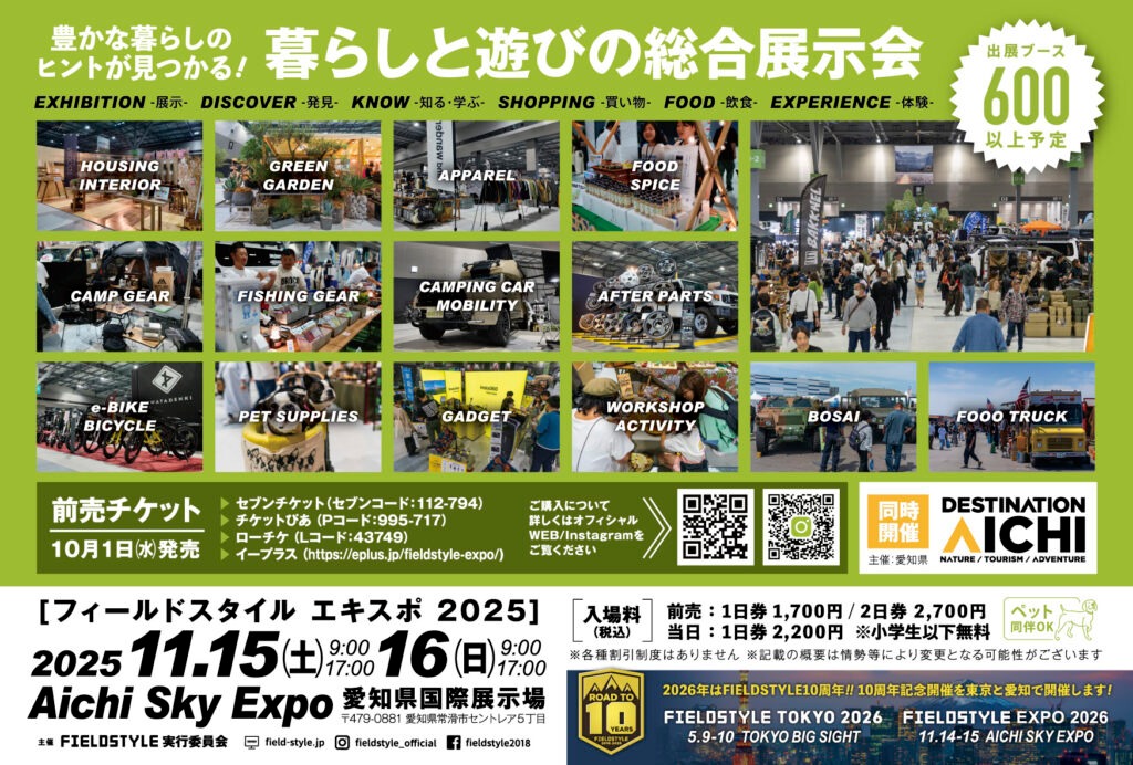 11月15日(土)~16日(日)愛知県国際展示場で開催される、暮らしと遊びの総合展示会「FIELD STYLE EXPO 2025」に出展します。